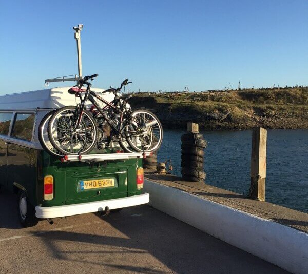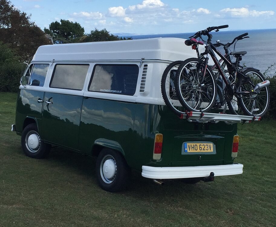 Due to popular demand we have now fitted the spare wheel on the front of Monty hence the Monty is cycletastic! title therefore this means a bike rack can be fitted to his tailgate. We offer bike racks for hire as optional extra’s (2 bikes). So why not hire a classic VW Camper and bring your bikes to explore the West Country we have some amazing off road cycle routes from The Tarka Trail and the Granite Way in North Devon to the scenic Camel Trail in Cornwall.