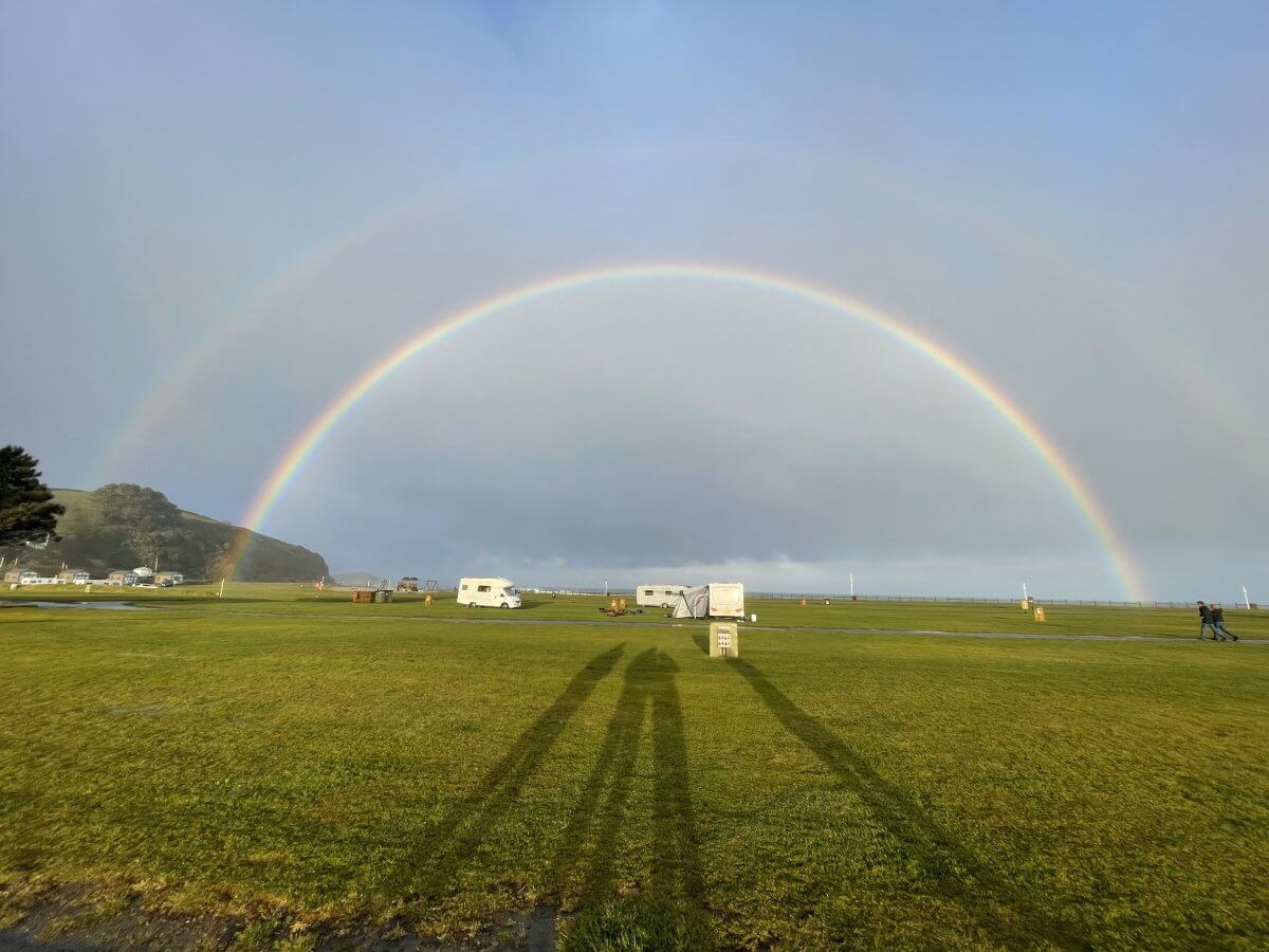 When we had finally finished all the walking, shopping and eating we hopped back into Campo. Our wonderful retro VW Camper and headed back to the campsite. We were greeted by an amazing double rainbow, nothing done in halves here!