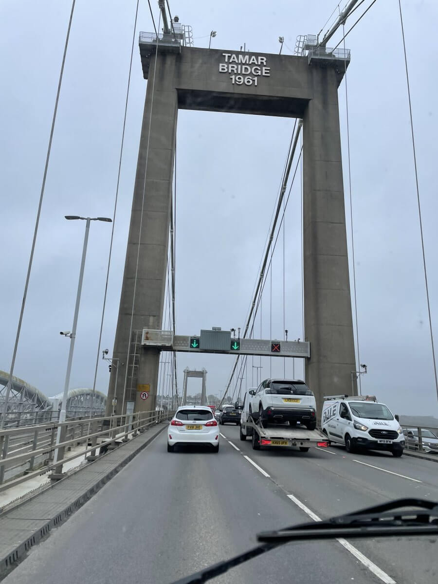 Then meandering on we then crossed the impressive 335 meter Tamar Bridge at Saltash taking us into Cornwall. Running alongside is the famous Isambard Kingdom Brunel Royal Albert Bridge which carries the main Cornish railway line.